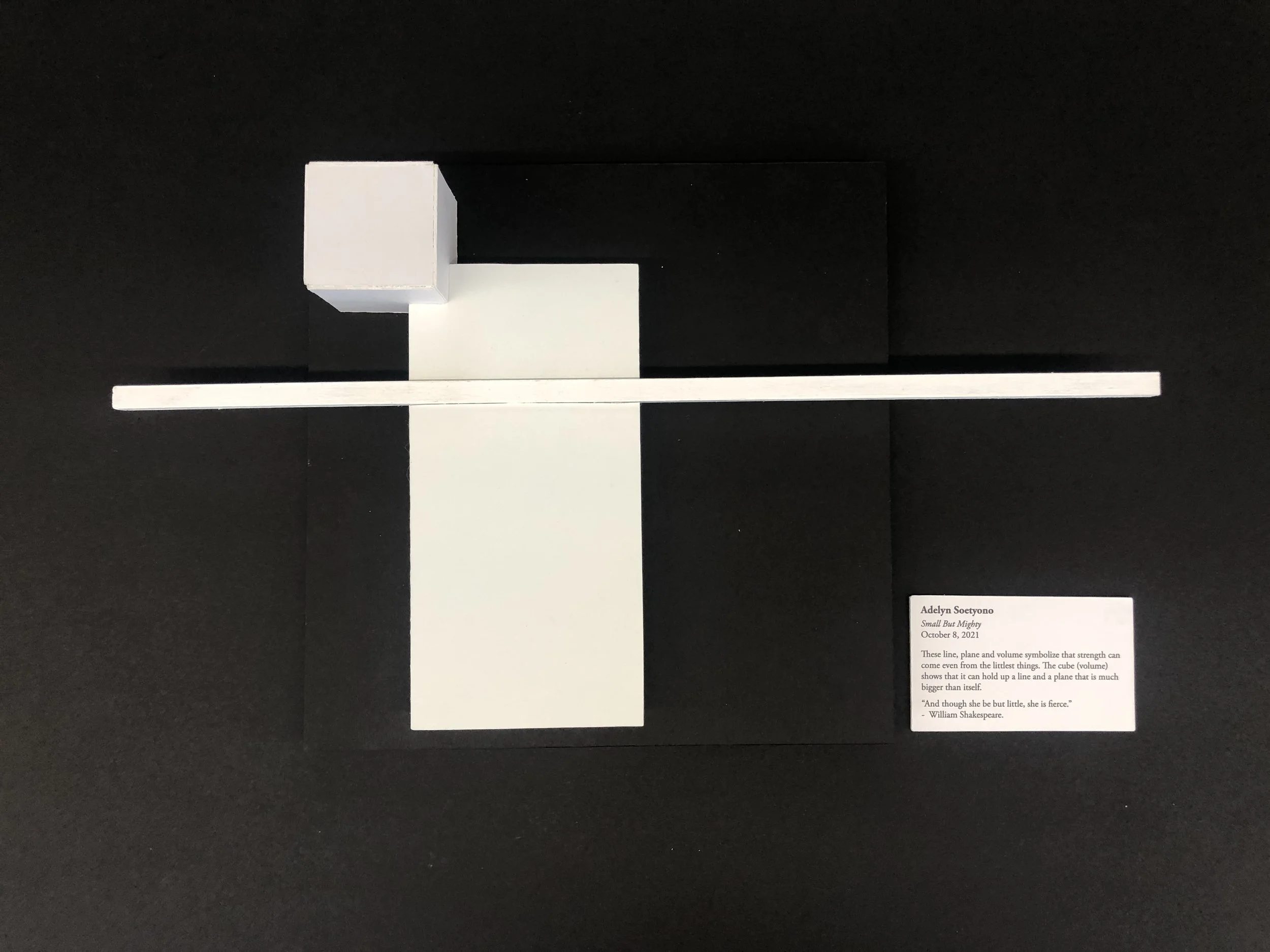 The Space Between : This line, plane, and volume symbolize that strength can come even from the littlest things. The cube (volume) shows that it can hold up a line and plane that is much bigger than itself.